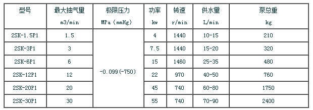 三、2SK系列水環(huán)式真空泵參數(shù)表: