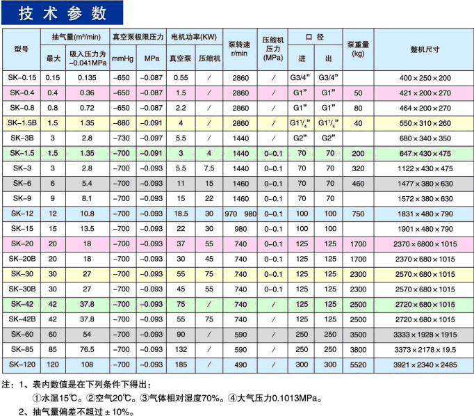 Sk系列水環式真空泵及壓縮機是用來抽吸或壓縮空氣和其它無腐蝕性、不溶于水、不含有固體顆粒的氣體,以便在密閉容器中形成真空和壓力。但吸入氣體允許混有少量液體。